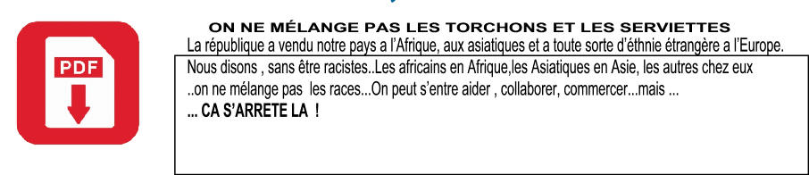 LA FRANCE PURE BLANC DE BLANC...SANS LA COULEUR AFRICAINE OU ETRANGERE NI AUTRE RELIGION BARBARE |